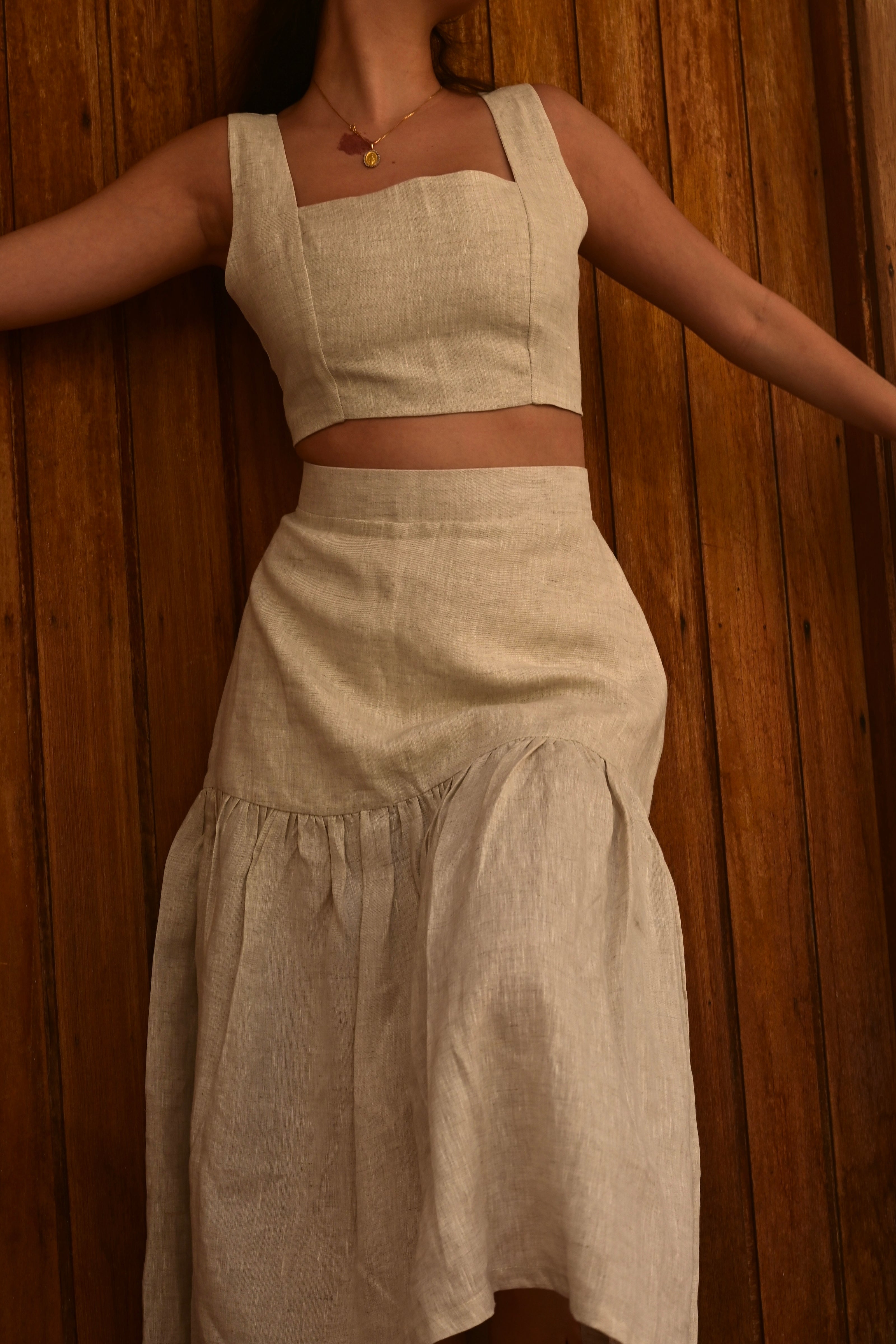 En esta colección hablamos de lo que sucede dentro de ese espacio suspendido: fiesta y siesta, descanso, calor, color, sol, cuerpos que bailan, luna que habla.
