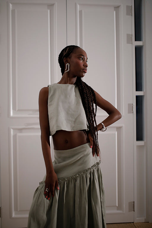 Se abren las ventanas, se cuela la brisa y salen afuera las risas. La brisa entra, alborota, alivia, ordena y desordena. La brisa nos avisa que viene algo, y esta colección es eso que se agita cuando el viento pasa: La tela, la piel, la memoria, el pelo.